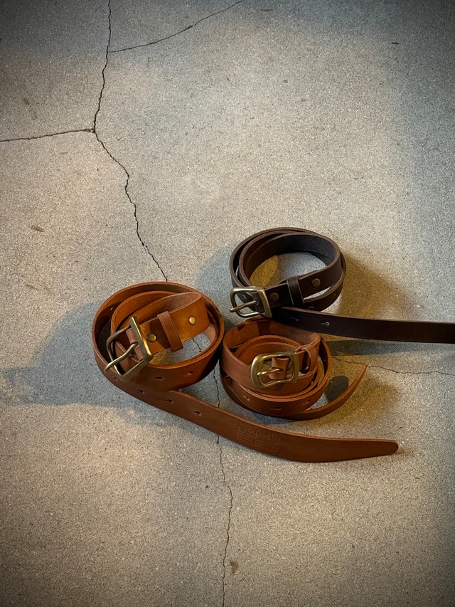 真鍮バックルを合わせた、 ロングタイプのレザーベルト。 ずっと作りたかったベルトが、 ようやくかたちになりました。 革の厚みとしなやかさのバランス、 使い込むほどに風合いが増す真鍮バックル。 シンプルな装いの中で、 さりげなくファッションのポイントになります。 垂らして使える長さに仕立て、 穴の数も多く設けているため、 男女問わずお使いいただけます。 ベルト穴は丸穴ではなく、 勾玉のようなかたちに。 さりげない部分にも、 表情を持たせています。 私自身も日常的に使っているベルトです。 ┈┈┈┈┈┈┈┈┈┈ 〈サイズ〉 幅:2cm.3cm 全長:約128cm ウエスト62~104cm ┈┈┈┈┈┈┈┈┈┈ 〈素材・仕様〉 牛革 真鍮バックル ┈┈┈┈┈┈┈┈┈┈ 〈オーダー〉不可 現品のみ ┈┈┈┈┈┈┈┈┈┈ 〈ご注意〉 天然皮革を使用しているため、 色むら・シワ・小さなキズが見られる場合があります。 素材の特性として、あらかじめご了承ください。 濡れた状態や強い摩擦により、 色移りする場合がございますのでご注意ください。 ご覧になる環境により、 実物と色味が異なって見える場合がございます。