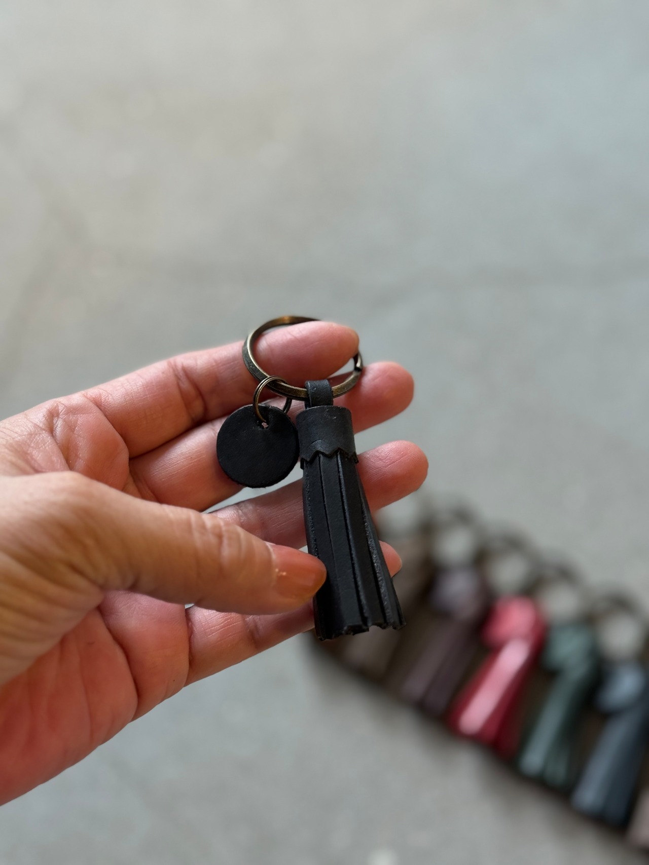 手のひらサイズの、シンプルなミニタッセルキーホルダー。