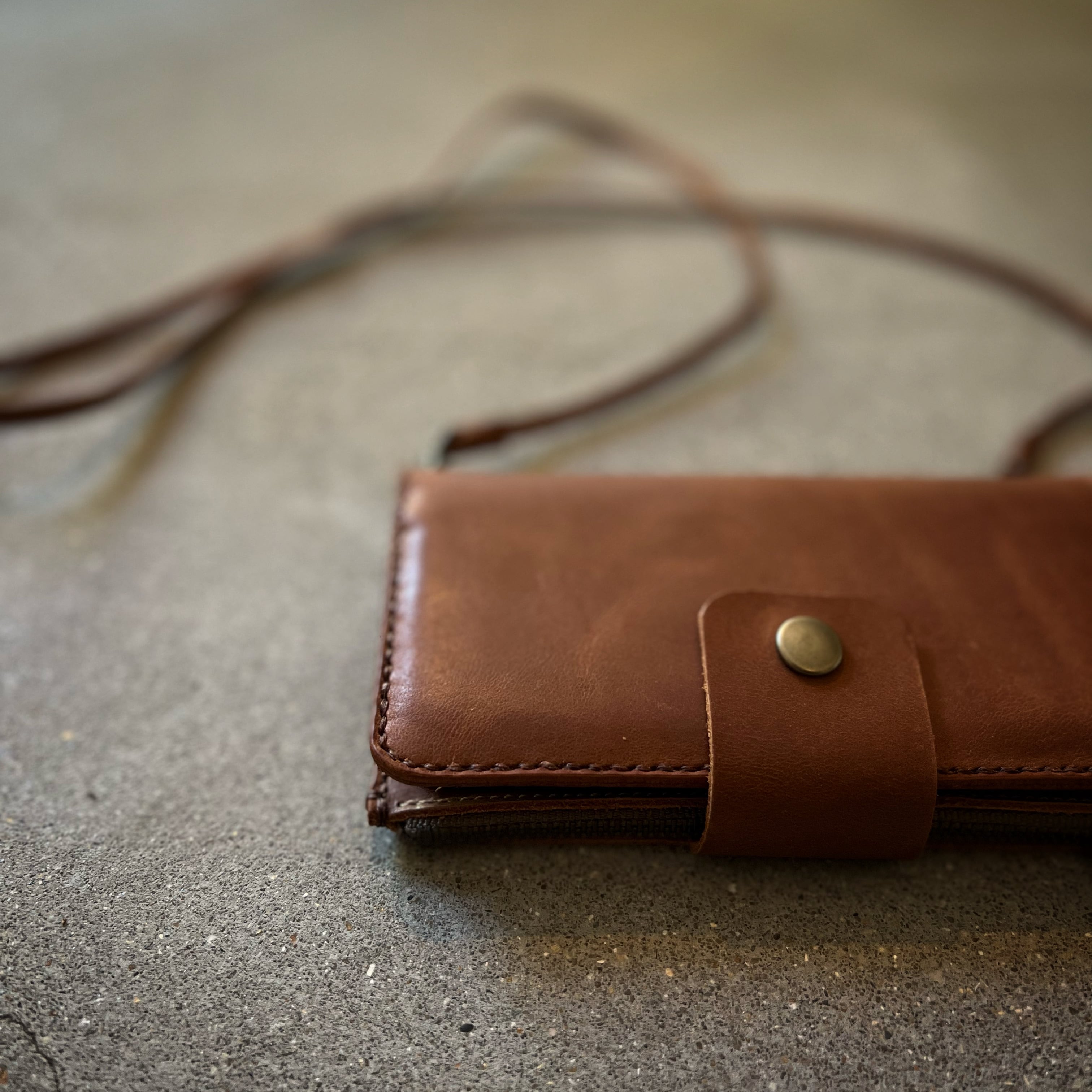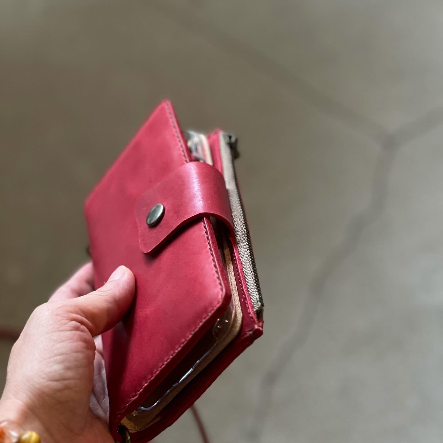 牛革、ヌメ革、ファスナー、鏡、斜め掛け紐
