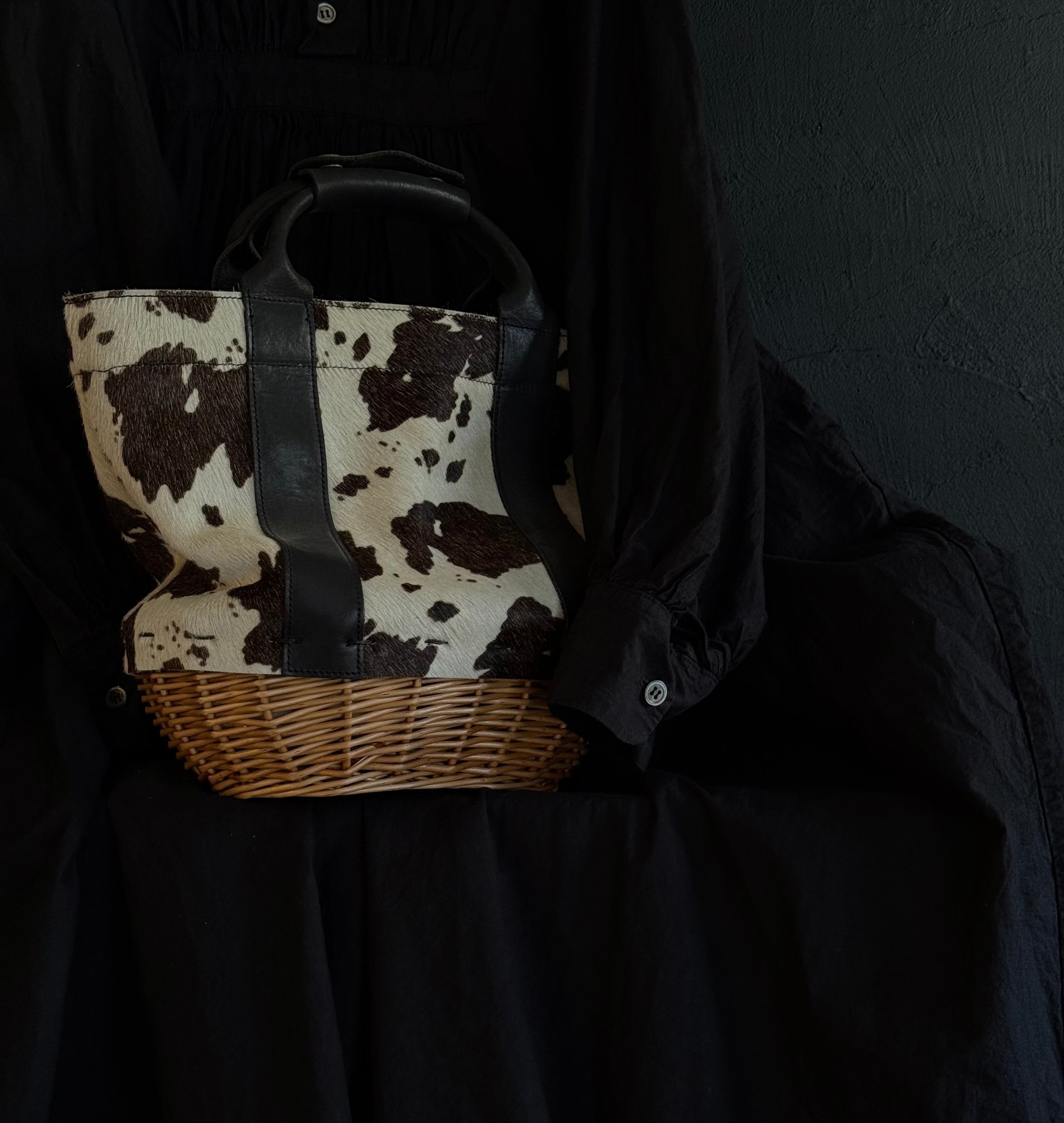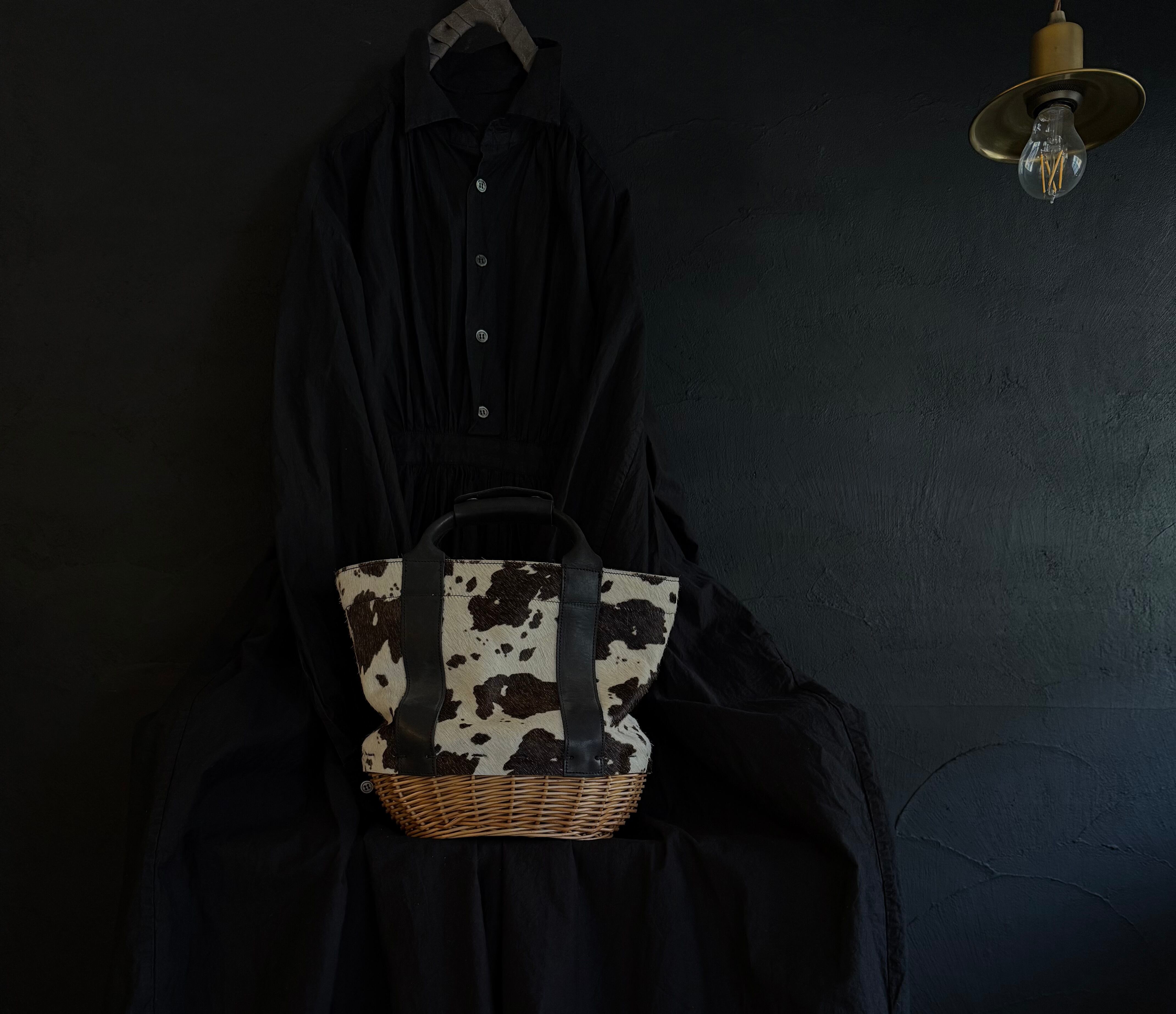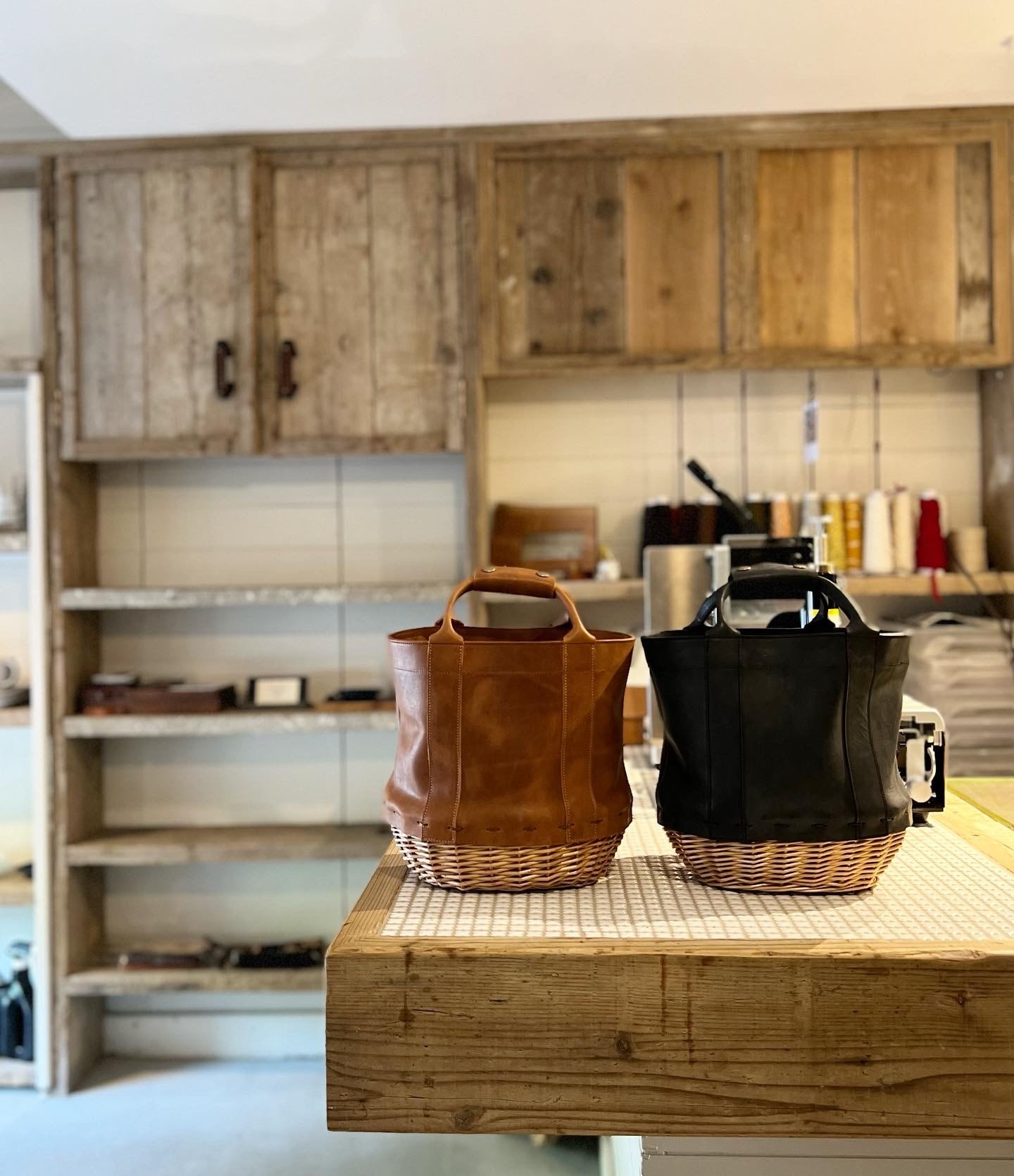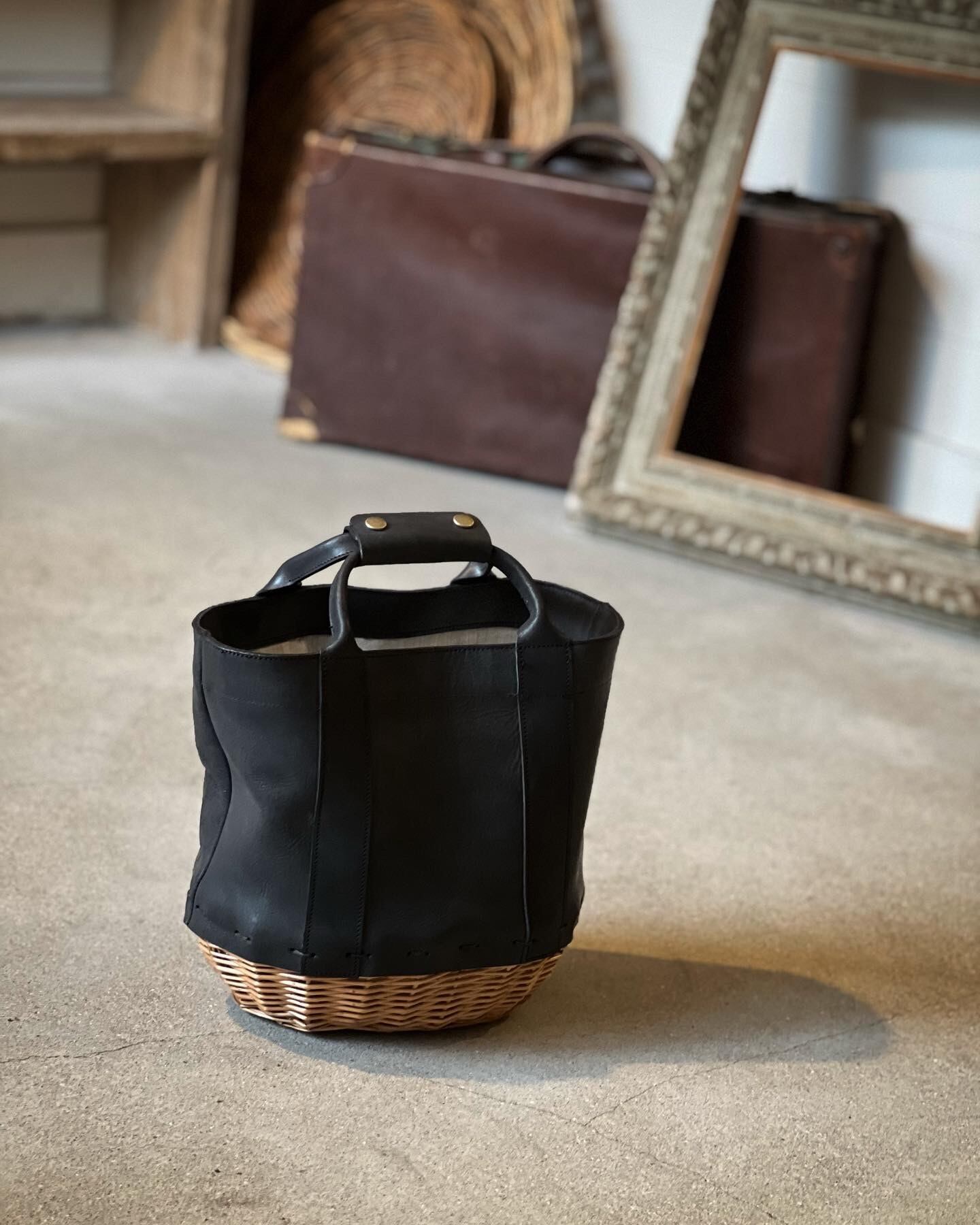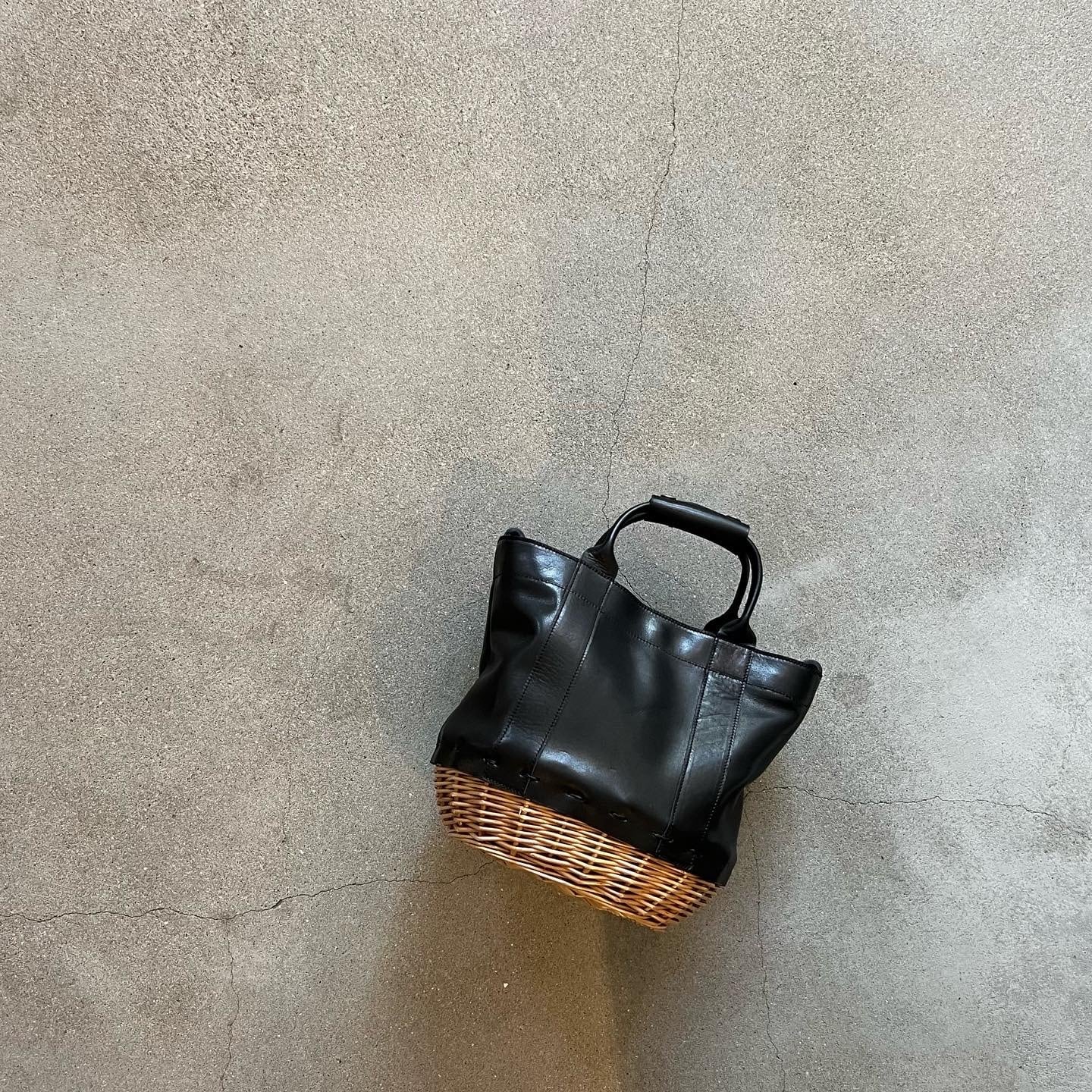 革と籐を組み合わせた、軽やかなかごバッグ。