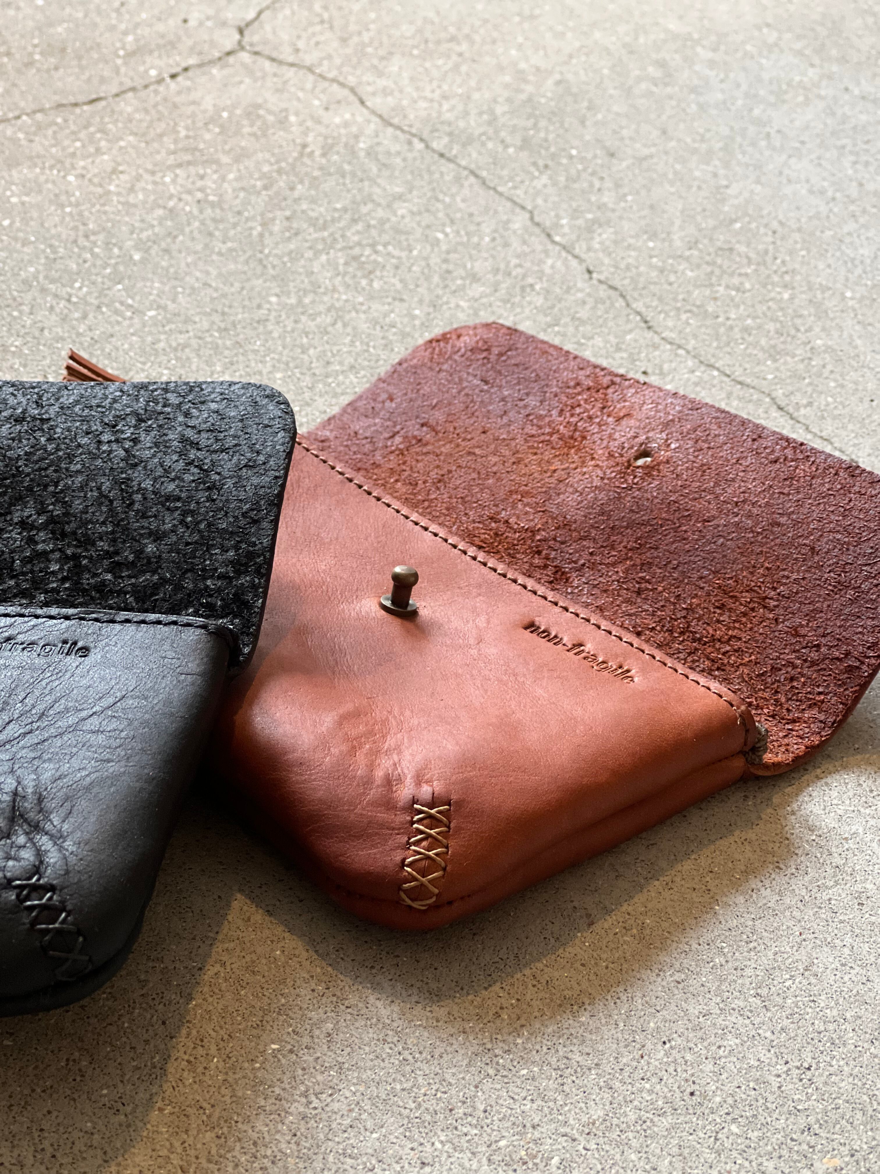 フラップはギボシ留めで、使いやすさと表情を両立しています。