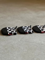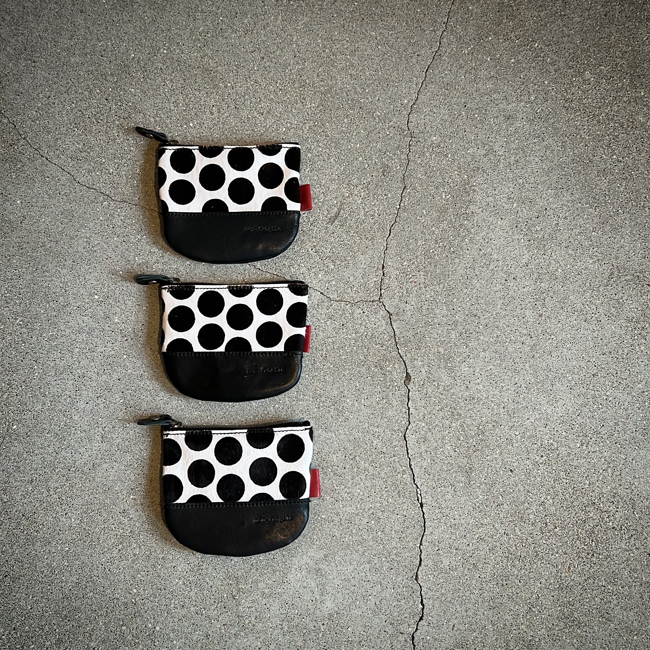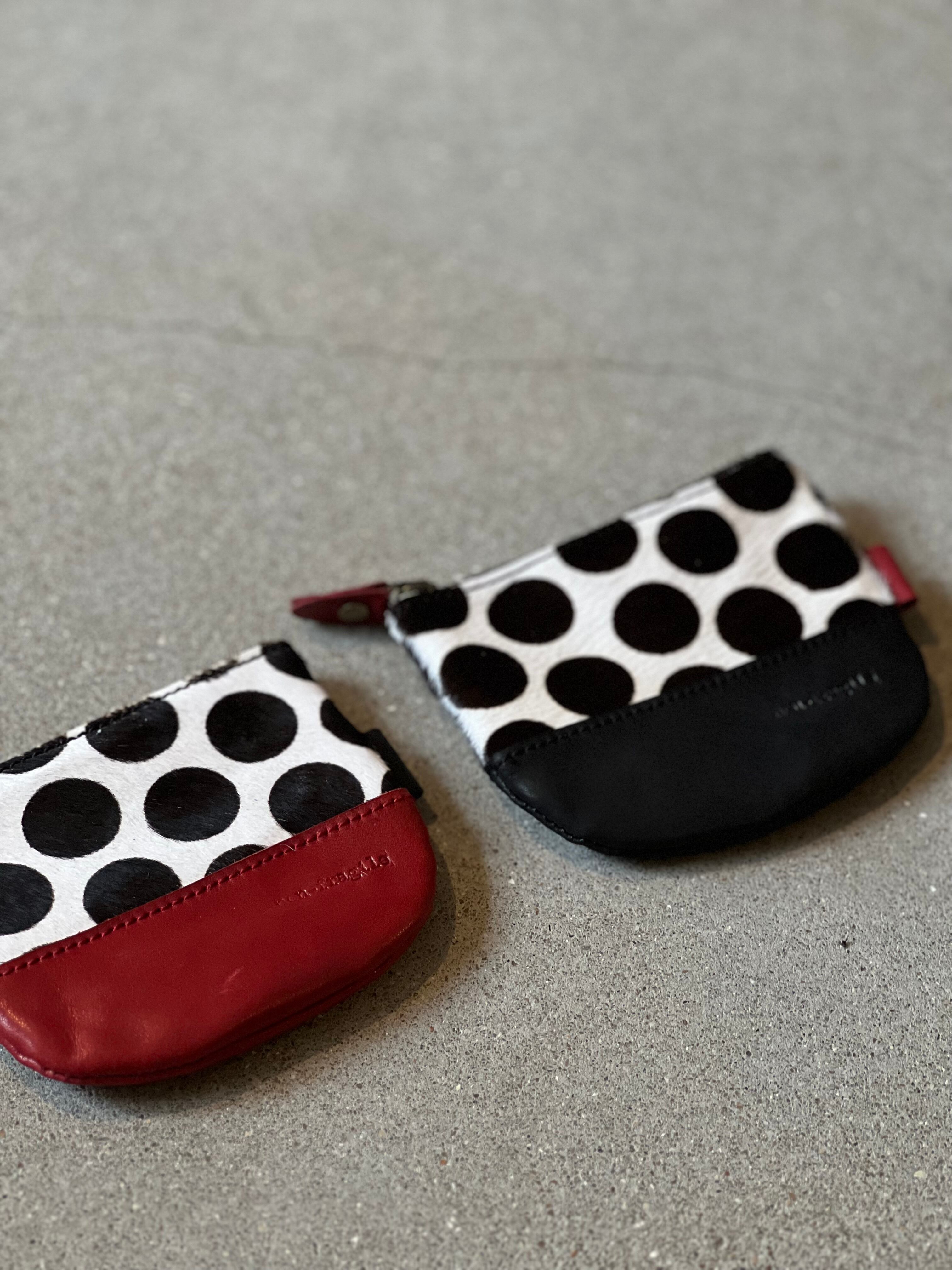 水玉ハラコをポイントにした、ミニファスナーポーチ。